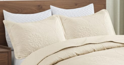 • California King: 1 Bedspread (106″x111″) & 2 Pillowcases (20″x36″)
